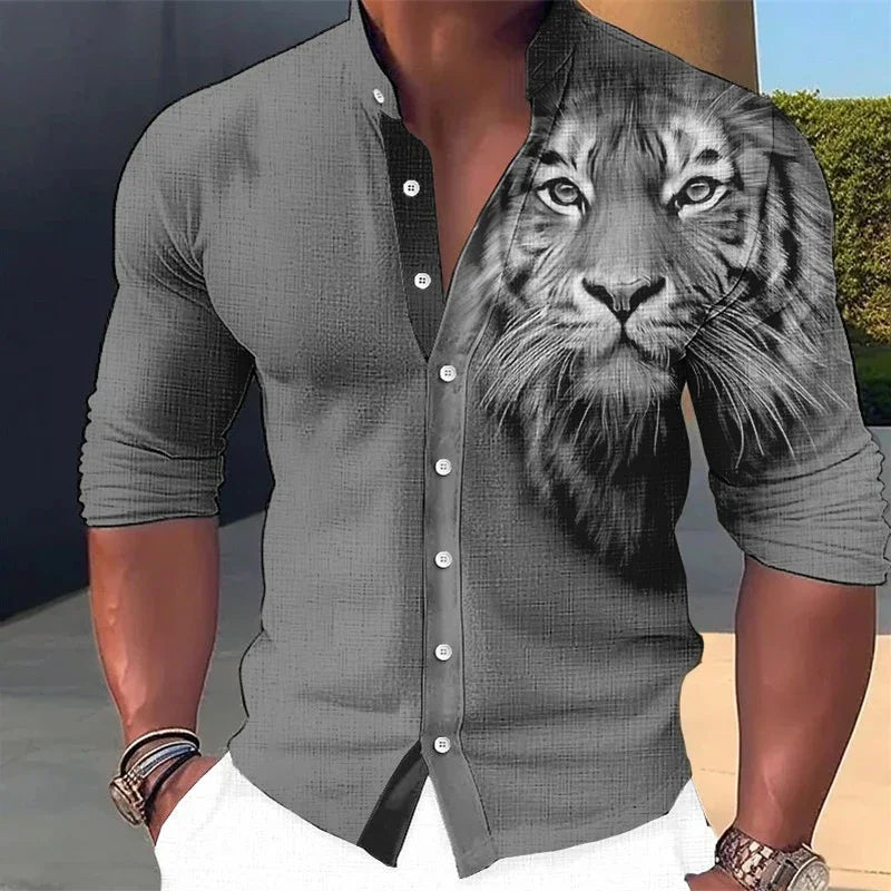 Make a bold statement with this eye-catching tiger 3D printed shirt designed for the modern man. The striking three-dimensional tiger graphic commands attention while the casual cut keeps you comfortable throughout your day. Perfect for streetwear enthusiasts, this piece pairs effortlessly with jeans or joggers for an instantly elevated look. The high-quality print resists fading, ensuring your shirt maintains its vibrant appeal wash after wash.