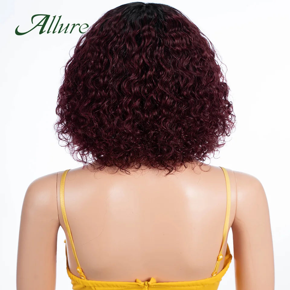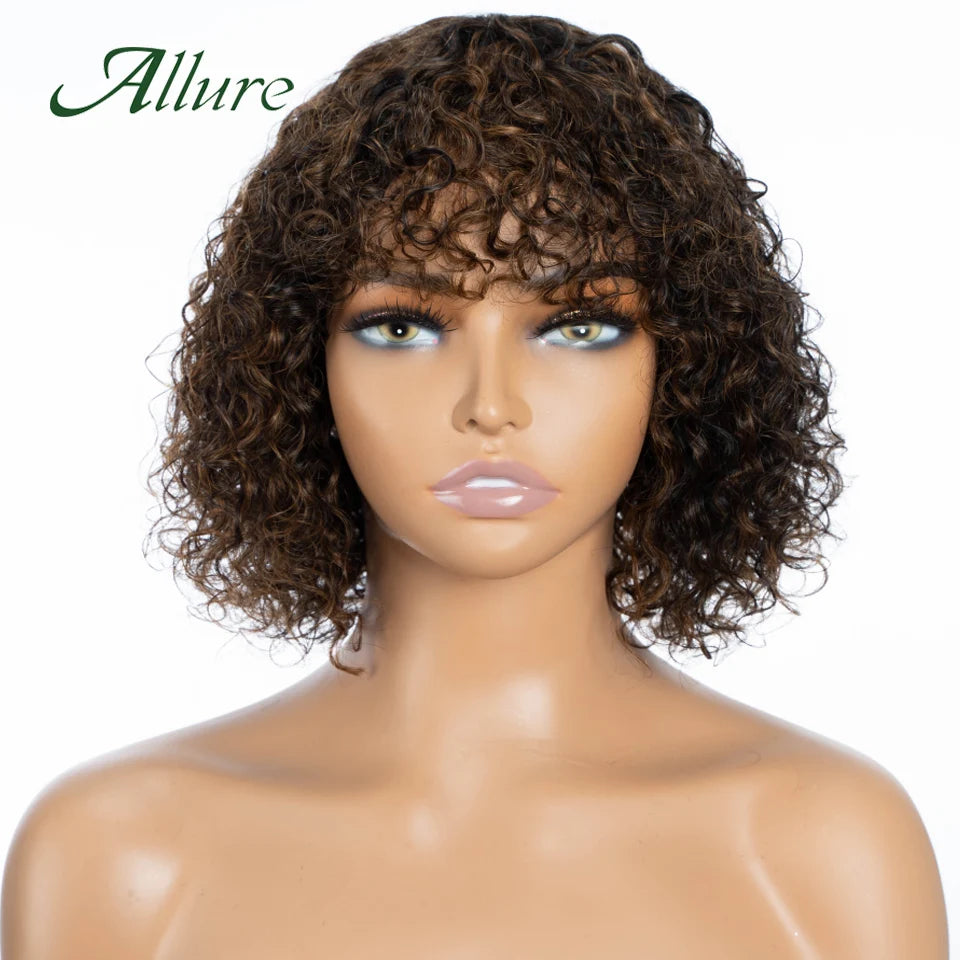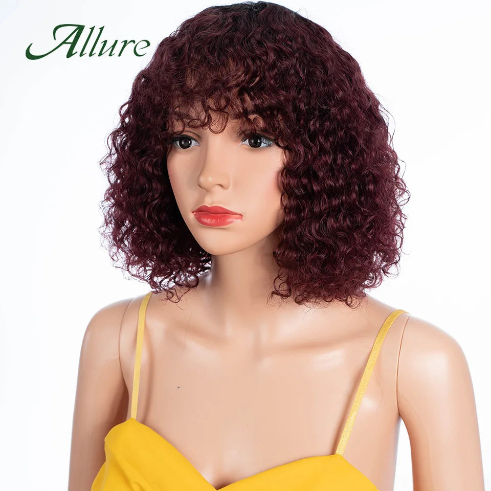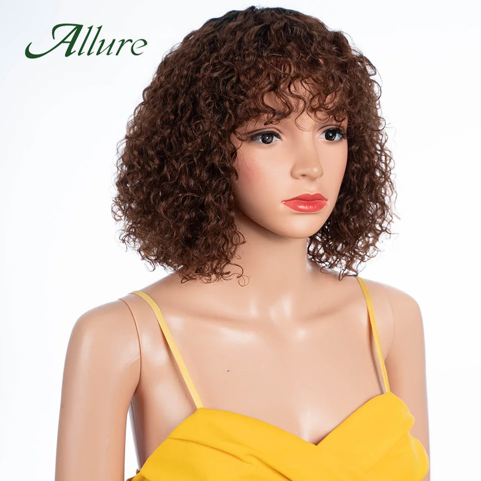 Natural Jerry Curly Wig With Bangs Human Hair Wigs Black Women Short Colored Burgundy Brown Glueless Brazilian Remy Hair Allure