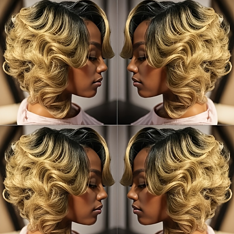 Ombre Short Curly Wavy Bob Wig for Women