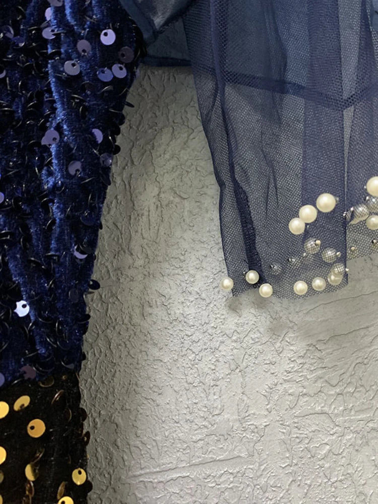 Sequins Long Party Dresses Ruffles Sleeve Beading High Slit