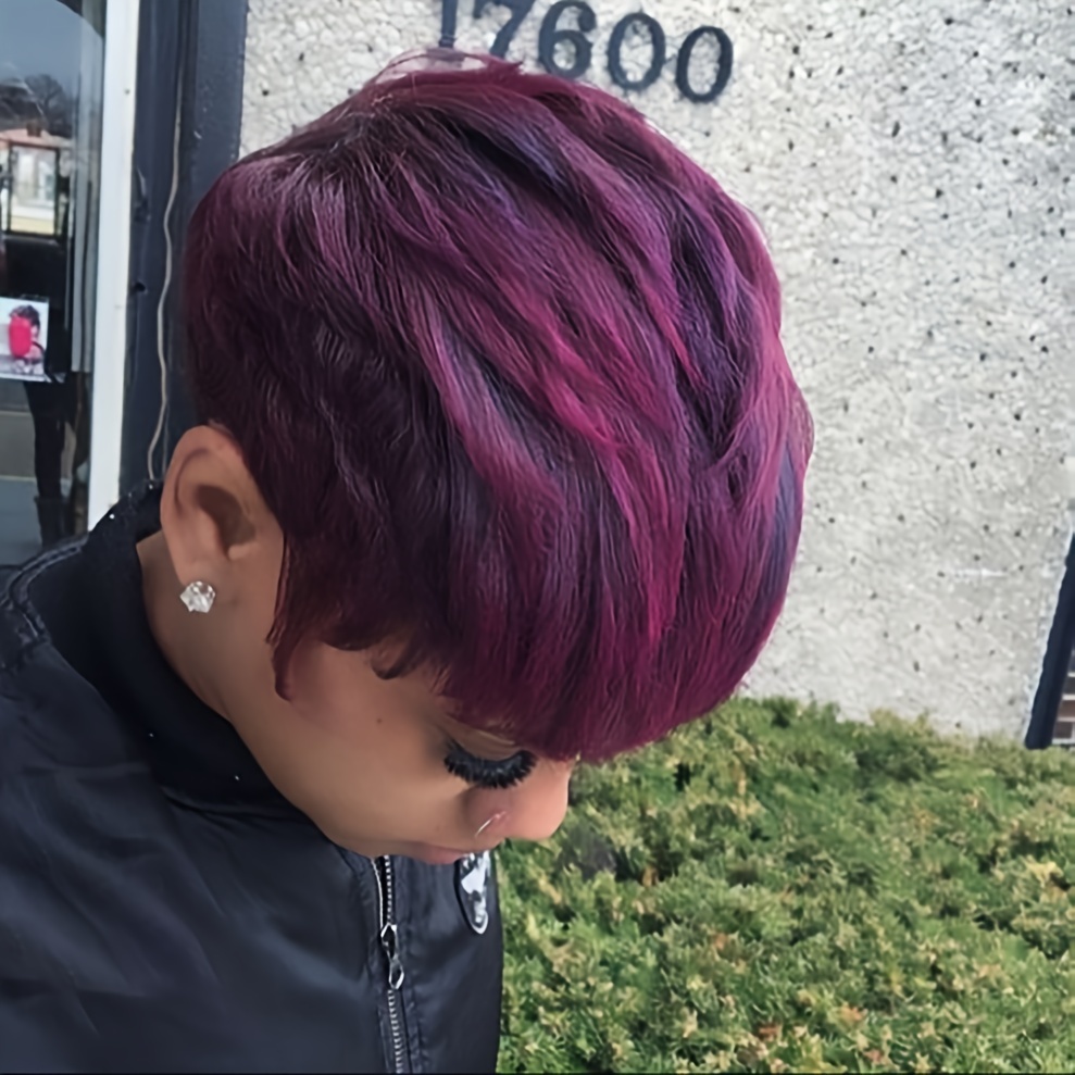 Add a bold and vibrant touch to your look with synthetic wig featuring bangs and mixed colors. Designed for short hair lovers, this wig is perfect for Halloween, Christmas parties, and music festivals. Easy to wear and style, it offers a fun way to transform your appearance instantly while keeping comfort all day long. Elevate your festive outfits and stand out effortlessly with this versatile short wig.