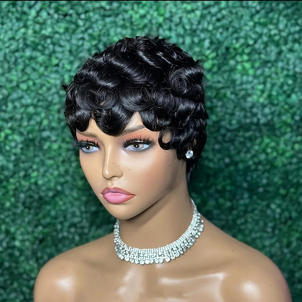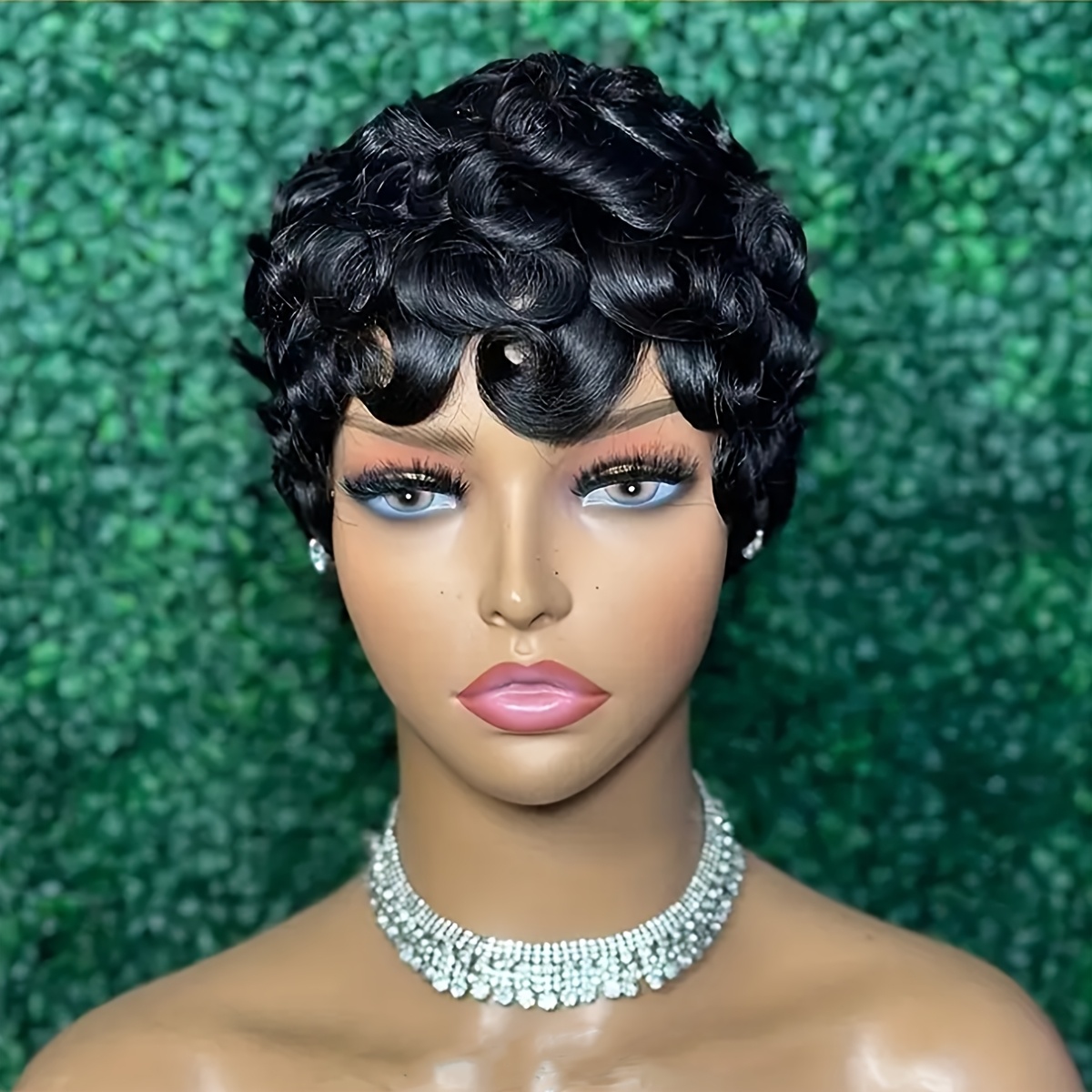 This short pixie cut wig features kinky curly synthetic hair with stylish bangs, crafted to enhance your natural beauty. With 180% density and a rose net cap, it offers a full, comfortable fit that looks incredibly natural. Perfectly designed for African American women seeking a chic, low-maintenance short hairstyle, this wig combines vibrant texture and realistic volume for effortless confidence every day.