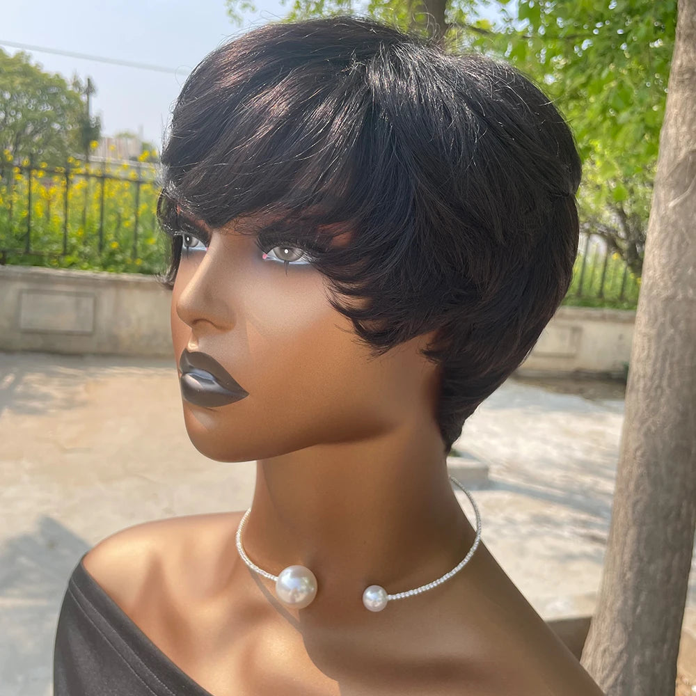 Short Pixie Cut Wig Human Hair For Black Women Machine Made Wigs With Bangs Short Wig Human Hair Wigs