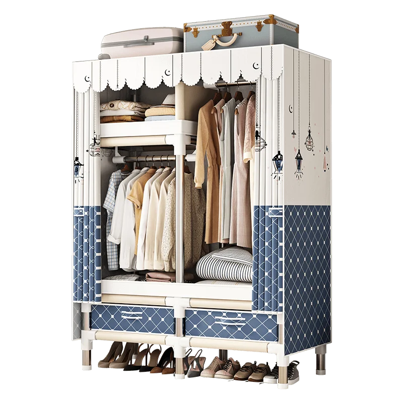 Keep your clothes protected and organized with this stainless-steel wardrobe. The included dustproof cover shields your garments from dirt and damage, while the spacious interior accommodates a full wardrobe. Ideal for bedrooms, dorms, or any room needing reliable storage and protection.