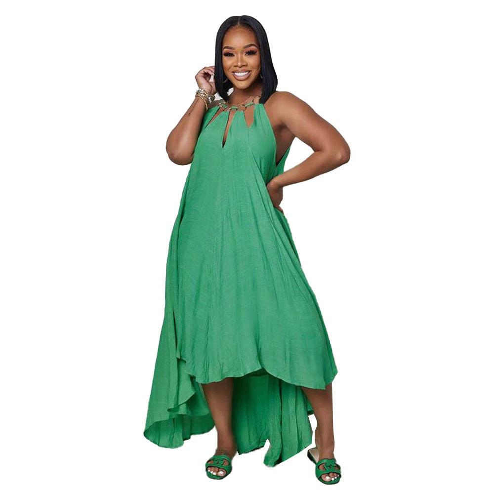 Summer New Women's Fashion Sexy Sleeveless Open Back Long Street Dress Solid Loose Pullover Metal Decoration Dress