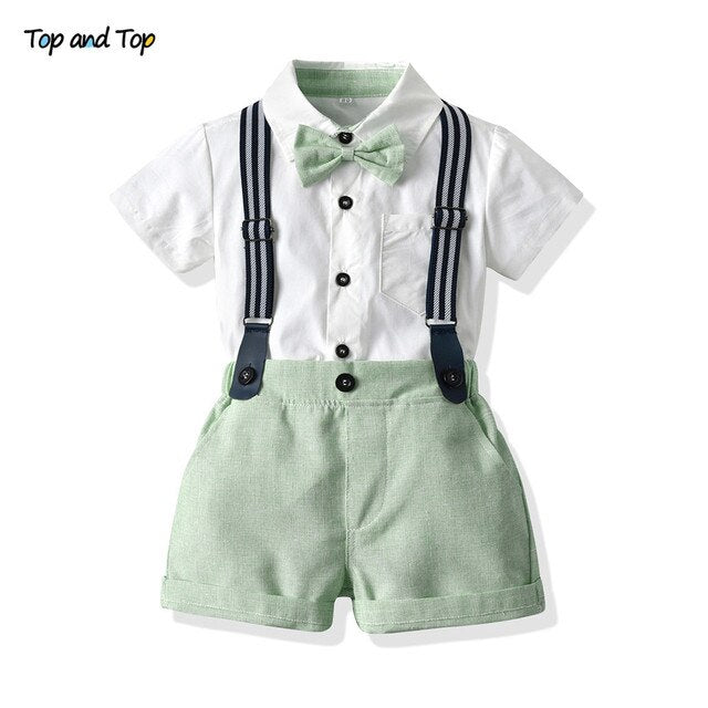 Top and Top Baby Boy Clothing Sets Infants Newborn Boy Clothes Shorts Sleeve Tops+Overalls 2PCS Outfits Summer Bebes Clothing