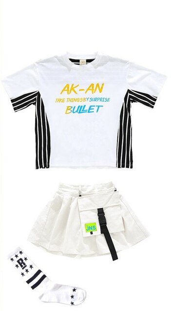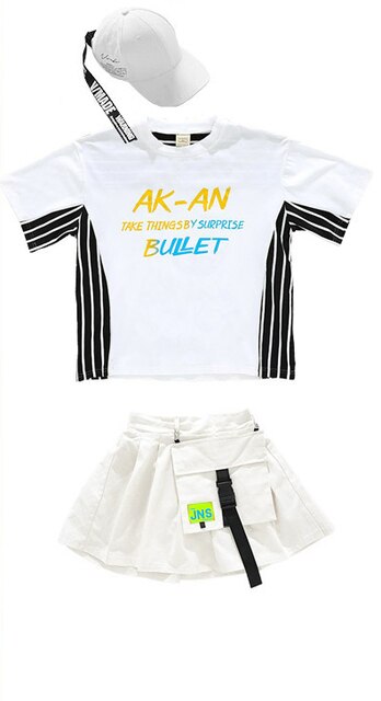 This White Jazz Dance Costume Kids Hip Hop Practice Wear Street Dance Printing Stage Performance Clothing Hiphop Rave Clothes is perfect for any aspiring dancer. It features a stylish design with a spandex material that is comfortable and breathable. The size range is from 110-170, and it includes either a top, shorts, or skirt. It is perfect for jazz, hip hop, and street dance performances.