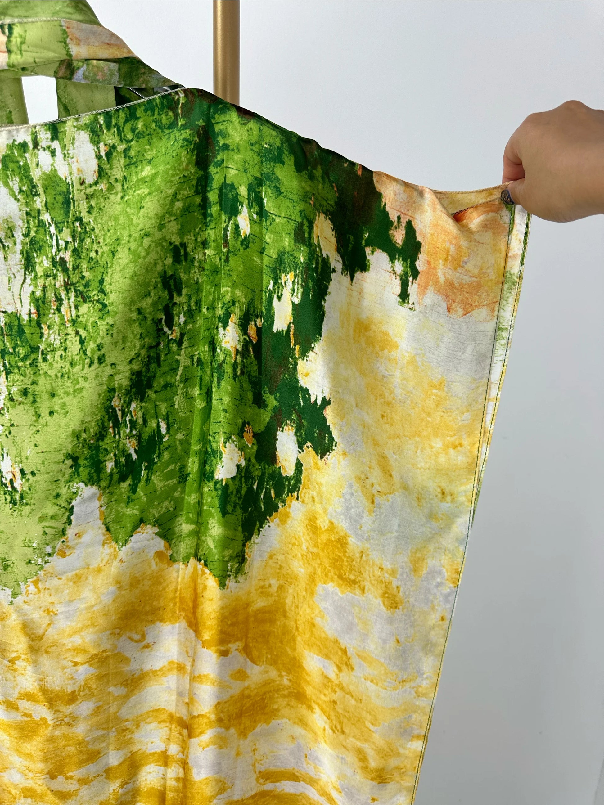 Embrace effortless elegance with this stunning printed color block kaftan that combines vintage charm with modern comfort. The dramatic bat sleeves add a bold, retro-inspired silhouette while the loose maxi cut ensures all-day ease and breathability—perfect for warm weather styling. Eye-catching color blocking and vibrant prints make a statement whether you're lounging at home or heading out for casual adventures. Includes a coordinating headband to complete your look.